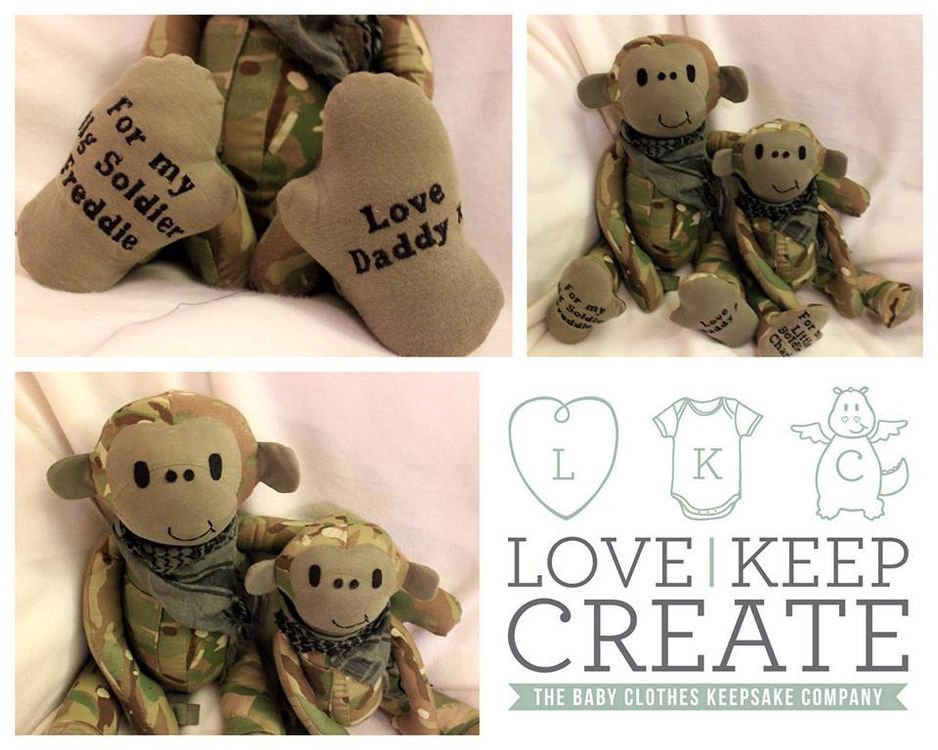 Our Military Monkey cannot be CE tested due to the nature of the materials and it is designed as a keepsake NOT A TOY. It comes with the following Warning: Not suitable for persons under 14 years of age. If you have any questions or would like any additional personalisation please do get in touch with us at info@lovekeepcreate.co.uk. Pattern is by LoveKeepCreate Ltd.