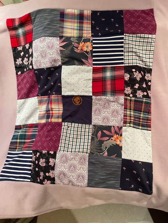 Wonderful way to remember my late husband using some of his much loved shirts, trousers and special tie. The blanket is really well made and the selected pieces of fabric thoughtfully arranged. Many thanks to the expert sewer who made it for me.
