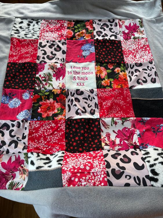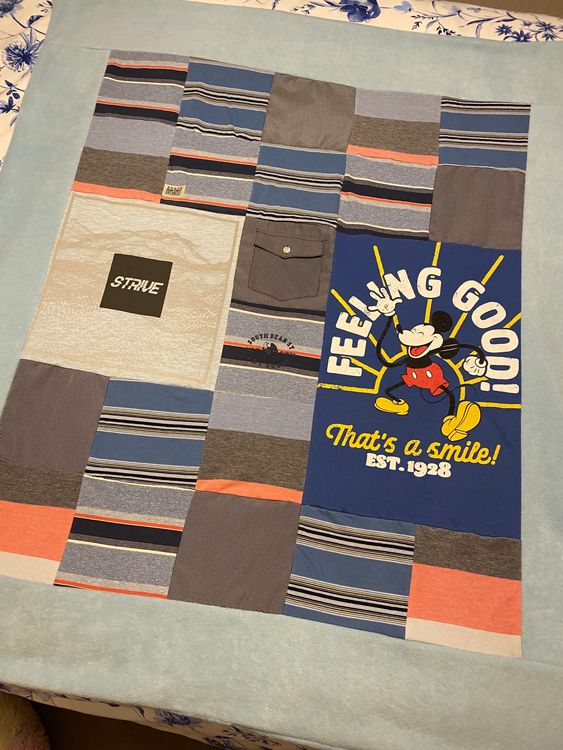 Having previously had a memory elephant made by Lovekeepcreate I asked them to create a memory blanket out of my son's clothes, who is sadly no longer with us. It was incredibly hard choosing the right ones but after some email conversations I managed to send 31 items of which all of them were used on my blanket. The end result is wonderful and I couldn't more be thankful to the team for taking the time and creating such a precious blanket for me. I have cuddled into it on numerous occasions and have the opportunity to remember my son and the times he wore his different outfits, thank you