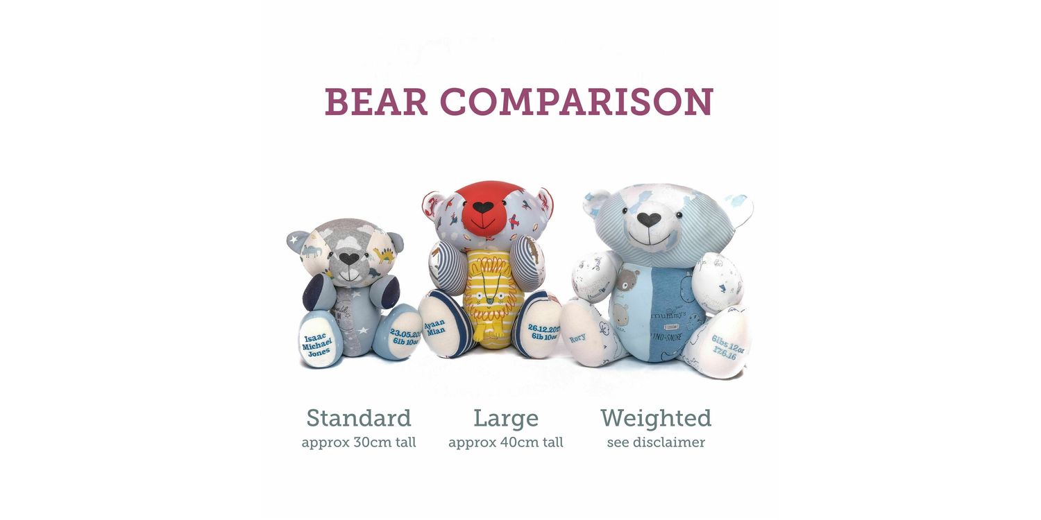 PLEASE NOTE: The weighted BEAR pattern has changed as of 1st October 2021. The arms and legs of the bear are no longer attached with joints. If you have previously ordered from us, the bear will look very similar in appearance but the arms and legs will not move independently. Weighted memory BEARS also do not feature the buttons on the bears limbs.